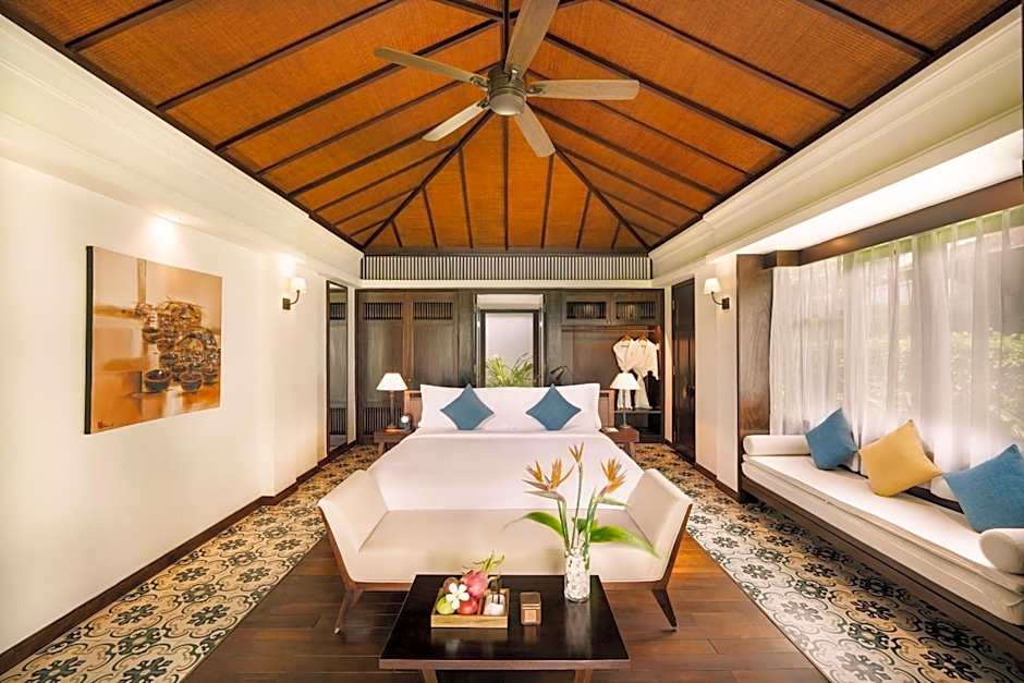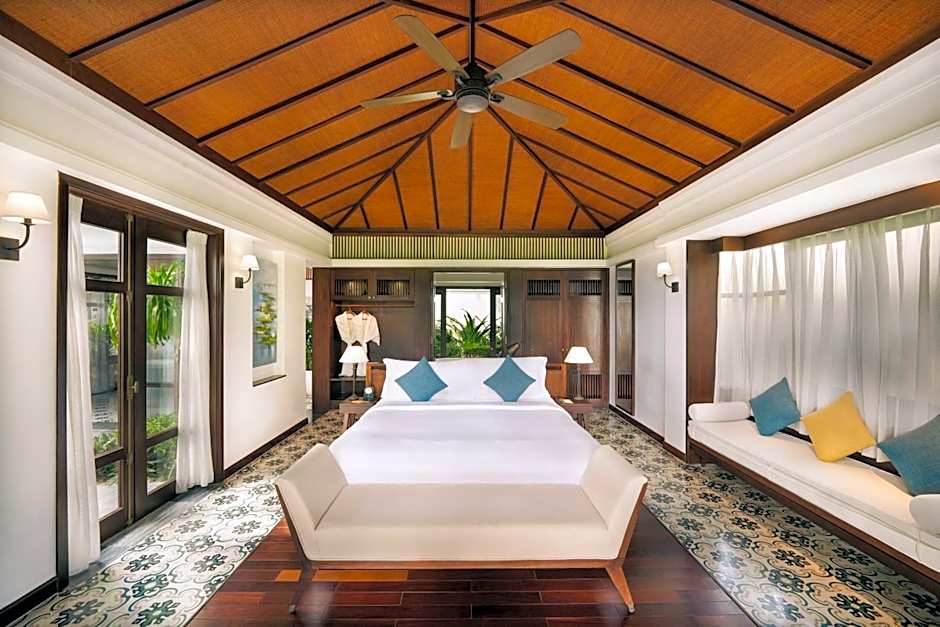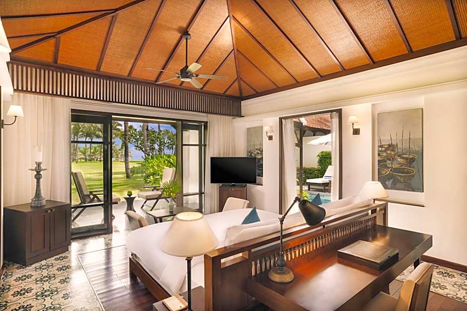 This villa features a private balcony that opens up to views of the sea and access to a private pool. The separate seating area is fitted with a flat-screen TV, desk and a safe. The stone-lined private bathroom includes a hairdryer. Down pillows and bed with Irish linen are available. The room type offers lounge access, complimentary one-time mini-bar, complimentary one-time afternoon high tea, optional breakfast with a-la-carte menu at Colonial restaurant.